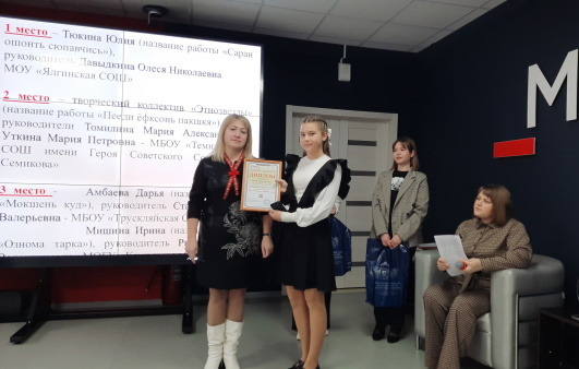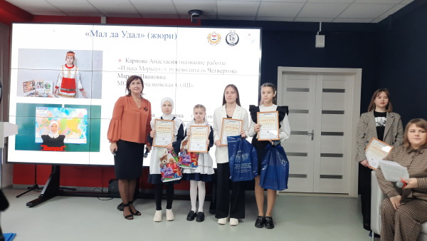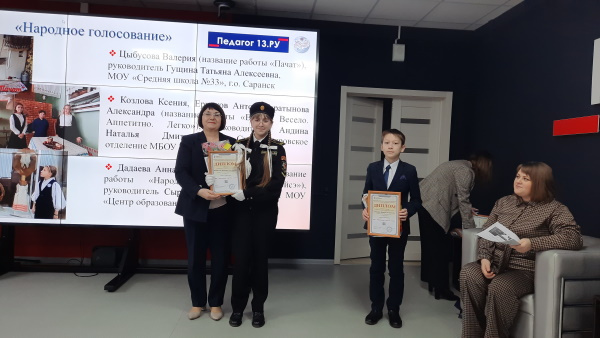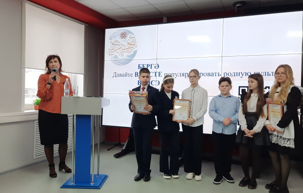 В церемонии награждения приняли участие члены Правления МРОО «Культурно-языковое многообразие территории» кандидат филологических наук, ректор ЦНППМПР— «Педагог 13.ру» Татьяна Васильевна Самсонова и главный научный сотрудник — заведующий отделом языкознания НИИГН, кандидат филологических наук Ольга Юрьевна Цыплякова. Кроме дипломов школьникам были вручены призы от наших партнеров – книжные издания НИИГН и экскурсия по Региональному центру выявления, поддержки и развития способностей и талантов у детей и молодежи «Мира».