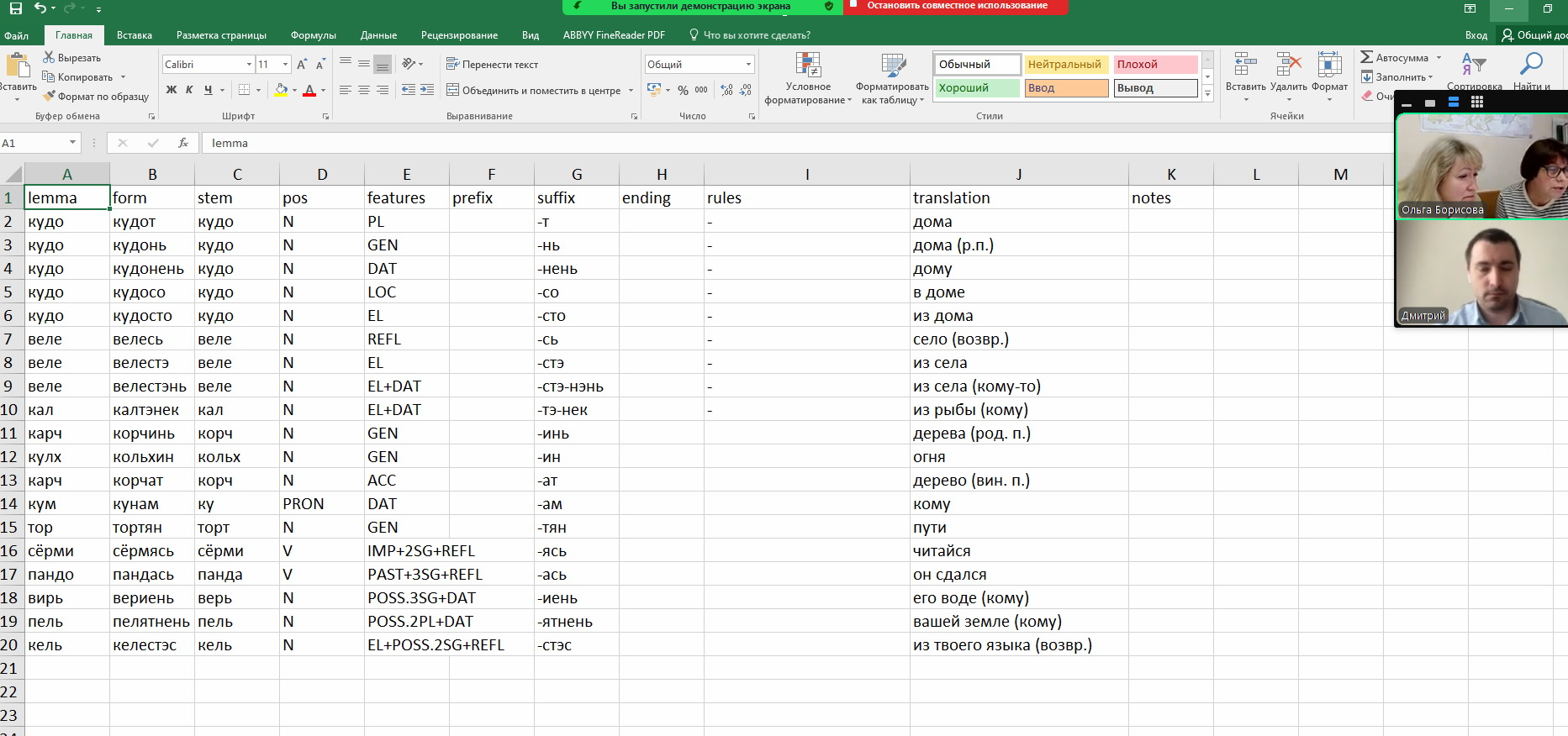 Языковеды НИИ гуманитарных наук при Правительстве Республики Мордовия в режиме ВКС обсудили подготовку временного серверного окружения (установку и настройку операционной системы) для веб ресурса с мордовскими эрзянским и мокшанским) словарями; разработку конвертеров для преобразования данных из формата Excel (XLSX) в машиночитаемый XML.